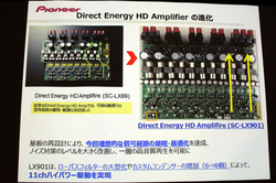 なお、これまでの同ブランドAVアンプは9ch構成だったため、LX901は2ch分アンプが増えることになる。しかし基板幅は10mmほどしか増えていないとのこと。平塚氏は「この寸法に収めるのは本当に大変でした。各ch間を少しずつ詰めねばならないけれど、クロストークなどの影響は排除しなければいけない。試作を繰り返して実現できました」と、開発時の苦労を語る。
