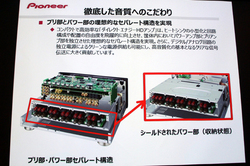 「全チャンネル同一出力であること/再生コンディションが等しいこと」を理想として掲げる“マルチチャンネル・ステレオフォニック・フィロソフィー”に則り、パイオニア独自の「ダイレクトエナジーHDアンプ」を一新。開発担当の平塚氏は「抜本的改革です。非常に勇気が要ることでした」と語る。
