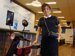 UPQを1年前に起ち上げた中澤優子社長は、「バイクが折りたたみなのでバッグも常に装着しているわけではない」と、今回のバッグを2ウェイ仕様にした理由を説明。「それでいて、ショルダーバッグにしたときに、使わない機能が残ってほしくなかった」と、ショルダーバッグとしての使い勝手にもこだわりたいとの思いがあったと語る。