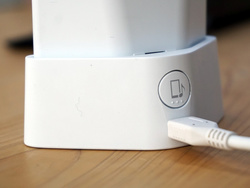 クレードルの背面に、HUIS REMOTE CONTROLLER本体の呼び出しボタンを装備。ボタンを押すと、HUIS REMOTE CONTROLLERから音が鳴り、リモコンが部屋の中で見当たらなくなった場合でも簡単に探し出すことができるようにした。