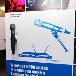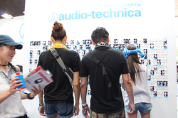 オーディオテクニカはオフィシャルスポンサーとして同イベントをサポートしており、2002年からステージ用マイク提供などを行っている。会場内ではSTAGEの天井から吊り下げられたヘッドホン型のオブジェや、メインステージとなる「MARINE STAGE」のスタンド席中央など至る所でフラッグが掲げられ、サマソニに欠かせない存在となっている。ブースの壁面には、これまで提供されてきた歴代使用マイクや今年のステージで使用されているワイヤレスマイクロフォンが展示されていた。