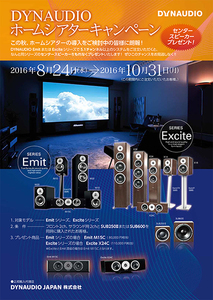 DYNAUDIO JAPAN(株)は、スピーカーシステム“Emit”シリーズまたは“Excite”シリーズにおいて、5.1ch以上のシステムを注文したユーザーに対して、センタースピーカーを無料プレゼントするキャンペーンを実施している。