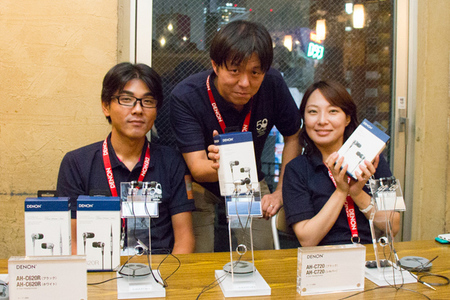 会場では、今日発表されたばかりのデノンのイヤホン「AH-C820」「AH-C720」「AH-C620R」の試聴ブースも展開。さっそくそのサウンドを確かめることができた。今回のイベントに集まった来場者は、いわゆるオーディオファンやヘッドホンファンではなく、むしろ音楽好きの方々だったようだが、パフォーマンスの合間にブースに足を止めて、イヤホンに聴き入る姿も多く見られた。