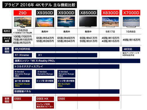 一目でわかる、ソニー“新4Kブラビア”。3シリーズの違い・主要機能を一覧比較!
