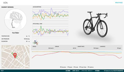 自転車に取り付けて、環境データやサイクリングモーションの様子、走行距離/ルートといった情報をBluetoothで連携したスマートフォンのアプリでリアルタイムに表示することができるテレメトリ機能を搭載。送られた情報はスマートフォンの回線経由でライブ共有が可能で、遠隔でのモニタリングもできる。