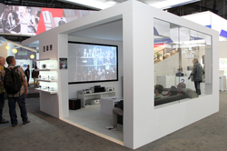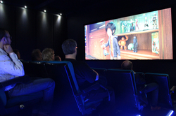 ブース内には映画館のような本格的なシアタールームも用意し、「EH-TW7300」を使った上映を実施。エントリーモデルのビジネスプロジェクターで、プロジェクターを使ってゲームを楽しむスタイルも訴求していた。