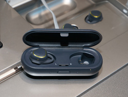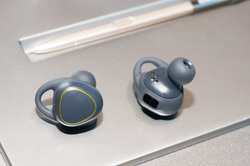 サムスンのブースでオーディオ関係の面白い製品を見つけた。完全ワイヤレスタイプのイヤホン「Gear IconX」だ。