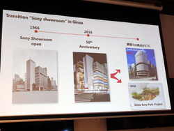 新たな店舗は、銀座ソニービルから徒歩3分ほどの銀座四丁目交差点にオープンする「GINZA PLACE」の4階から6階まで。1階と2階には自動車メーカー日産のショールームが、3階と7階にはレストラン・カフェが入居している。なお、銀座ソニービル全体の営業をいったん終了する2017年3月31日までは、銀座では2つの拠点からソニーの情報発信活動を行うことになる。