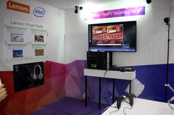 レノボのブースでは、ワークステーションPC「ThinkStation」と「HTC VIBE」によるVR体験が可能。エベレスト登頂を疑似体験する「Everest VR」などのVRコンテンツを体験できる。