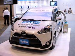 クラリオンは、サウンドプロセッサー「Z3」、スピーカー「Z7」、サブウーファー「Z25W」といった同社“フルデジタルサウンドシステム”を用いたデモカーを展示。あわせて、10月から発売予定の平面振動板を採用したフルデジタルヘッドホン「ZH700FF」(関連ニュース)の展示/試聴スペースも展開している。