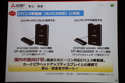 国内市販向けとしてはこちらも初という、高度化光ビーコンに対応したETC2.0車載器も用意。アンテナ窓張りタイプの「EP-B016SRBW」を10月27日より、アンテナダッシュボード置きタイプ「EP-B016SRBD」を1月中旬より発売する。