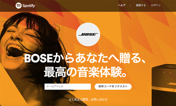 本キャンペーンではSpotifyのボーズ専用ページが用意され、リクエストを送信すると先行して招待コードの入手が可能となる。