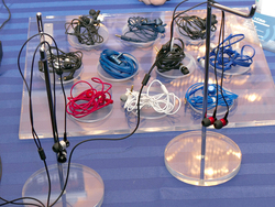 また、同じブース内にはこの特許技術「HDSS」を開発したHDSS INTERNATIONALも出展しており、ここではHDSS用のETLモジュール搭載イヤホンと非搭載イヤホンを聴き比べて、その効果を体験できるデモも実施している。
