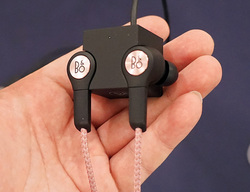 B&O PLAYでは、説明員が「これまでにない勢いで売れている」というBluetoothイヤホン「Beoplay H5」や、ノイズキャンセリング+Bluetoothヘッドホン「Beoplay H8」、Bluetoothスピーカー「A1」などを展示していた。