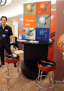 今年6月に発売したFenderブランドのイヤホンは、売上が大変好調なようだ。会場には大型のバナーを用意し、Fenderのロゴ入りの椅子も置かれていた。