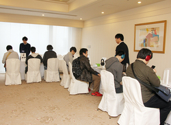 同ブースには8席分の試聴機が用意されていたが、会場のオープンと共に多くの人々が訪れ、満席に。部屋の半分ほどのスペースには順番待ち用のいすが置かれていたが、そちらも満席状態になるなど、その注目度の高さがよく分かる。