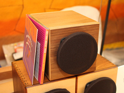 WAON(和音)は、CDジャケットと同サイズの小型スピーカー。木製のエンクロージャーは、敢えて硬くせず、スピーカーのボディ全体から音が放射されるよう設計しているという。内部には8cm口径のフルレンジスユニットを搭載する。音の広がりが大きいことが特徴で、プライベートはもちろんカフェやショップ、音響制作現場でも使用されているという。