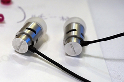「ナガオカ」の名前をブース一覧で見つけて「??」と思った方もいるのでは。そう、レコード針で有名なあのナガオカが出展しているのだ。ヘッドフォン祭は今回が初参加。現在同社が開発中だという、ルビーを使った「イヤホン」が参考出展されていた。型番や発売時期などは未定。ボディはシルバーとブラックの2種類を用意する予定。