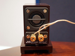 JVCケンウッドは、名刺サイズの超コンパクトな“ウッドコーンスピーカー”と、同スピーカー専用チューニングをほどこしたハイレゾ対応ミニアンプをセットにしたオーディオシステム「EX-NW1」をJVCブランドから12月上旬に発売する。オープン価格だが65,000円前後での実売が予想される。