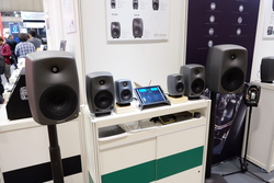 オタリテックが取り扱うGENELECブランドは、アクティブスピーカー各モデルを一斉に展示。なかでもSAM同軸スタジオモニター「8351APM」は、ウーファー2基とミッドレンジ1基をシンメトリーに配置し、縦横どちら向きでも設置できるメリットを持つモデルとして、来場者が足を止めて音を確認していた。