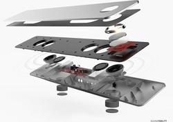 パッシブラジエーター構造を採用しており、12W+12Wの出力を実現する。再生周波数は100Hz〜20kHzで、入力端子としてRCAを1系統、3.5mmステレオミニを1系統、出力端子に3.5mmステレオミニを1系統備える。外形寸法は590.6W×63.1H×103.3mm、質量は約1.1kg。