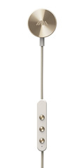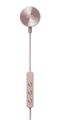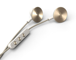 Bluetoothイヤホン「BUTTONS」の筐体は金属製の円形で、これはアナログレコードの形状にインスパイアされたものという。ケーブルもファブリック素材で、ファッション性を高めている。本体カラーはブラック、ゴールド、グレー、ローズの4色。