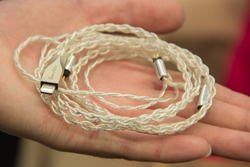 また、5極φ4.4mmプラグによるバランスケーブルも参考出展。こちらは端子のハウジングが最終ではないとのことだったが、近日中の発売を予定しているという。