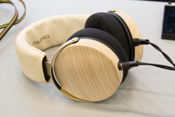 オンキヨーからは、「桐」素材のイヤーカップを採用することで和楽器の音響技術を採用したヘッドホンの試作機が出展された。これまでも度々試作機が披露されてきたが(関連ニュース)、今回出展されたモデルは外観と音質をより完成版に近づけた試作機とのことだ。