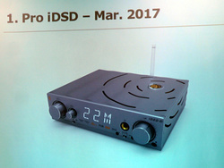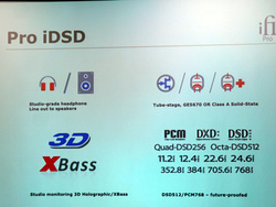 「Pro iDSD」はプリアンプ/ヘッドホンアンプで3月の発売を予定。フルバランス構成で出力段には真空管を搭載するほかBluetoothにも対応。「具体的にはまだ言えないが、DSD512(11.2MHz)対応よりも上のスペックにも視野に入れている」という。