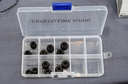 完実電気のブースには、同社が新たに取り扱いを発表したイギリスのイヤーチップメーカー「Crystalline Audio」(関連ニュース)の製品がさっそく登場していた。設立は1年ほど前と若いメーカーだが、個人輸入するイヤホンファンもいるほど人気を博しているとのこと。