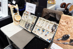 oBravo(オーブラボー)ブランドを展開するリエイゾンのブースでは、平面駆動とハイルドライバーのイヤホンを多数展示し、価格は安価な平面駆動形イヤホン「erib-8」で24,000円(税込)、ハイエンドのハイルドライバーイヤホン「eamt-1C」では620,000円(税込)と幅広い製品が用意されている。