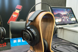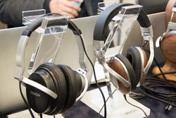 まず注目を集めていたのが、デノンの新しいフラグシップヘッドホン「AH-D7200」だ。本機はこれまでもイベントなどに出展されたが、いずれも音質は途上のものだった。しかし今回は、限りなく最終に近いバージョンとのことで、そのサウンドをじっくり確認することができた。1月中旬予定の発売日が待たれる。