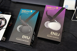 韓国ブランドのEARNiNEは、独自開発したバランスド・アーマチュアドライバーを搭載したいイヤホン「EN2J」「EN1J」を出展。音質にバラつきがない事に自信を持っており、eイヤ店頭で販売されているパッケージ製品をそのまま展示しているとのこと。