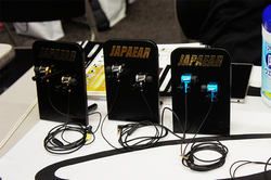 JAPAEARはJAPANイヤホン製造によるブランドで、秋のヘッドホン祭でも披露した「JE-555」「JE-111」をメインに展開している。JE-555はフラットな音質、JE-111はキラキラした高域を特徴とする。