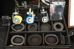 人気ヘッドホンの音をさらに自分好みにできるイヤーパッドを各種販売しているYAXI。発売したばかりのKOSS「PORTAPRO」用イヤーパッド(関連ニュース)のほか、参考出展品として来年発売予定のソニー「MDR-CD900ST」用イヤーパッドも用意していた。