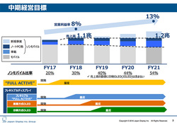 JDIでは、安定収益基盤を確立するために事業構造の変革が必要と判断。そのために非モバイル機器向けディスプレイの割合を、21年度には50%超にまで拡大する必要があると説明している。