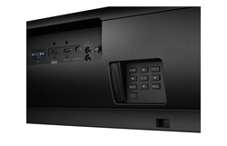 各種端子は本体側面に設置。入力端子としてHDMI端子を2系統(HDMI2.0 & HDCP2.2、HDMI1.4a & HDCP1.4)とミニD-sub15ピンを2系統備える。各種端子は余裕を持たせて配置しており、ケーブル交換時の接続性に配慮。フロント換気のデザインを採用し、オプションで天吊り金具が用意される。