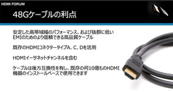 48Gbpsまでの伝送に対応する48Gケーブルも規定。8KのHDR動画を非圧縮で送ることができる規格で、これまでのバージョンとの後方互換性も備え、既存のHDMI機器で使用できる。