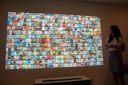 例えば本機では、映画や音楽、雑誌など様々なジャンルのコンテンツのサムネイル画像をタイル状に並べてランダム表示。自分が所有している作品だけでなく、動画/音楽配信サービスの作品なども含めた膨大なコンテンツをランダムで表示させておくことで、一般的なサービスのレコメンド機能とは異なる新たなコンテンツとの出会い方を提供するのだという。