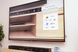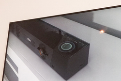 ブースで実際に確認したHT-ST5000のサウンドだが、一聴して、音の広がりをしっかりと再現してサラウンド感を明確に伝えてくれる基本性能の高さがわかる。ここにドルビーアトモスによる高さ方向の音が加わると、映像の場所に居合わせるような臨場感がさらに増す。もちろん高さ方向の再現は、天井の反射を使ったイネーブルドスピーカーによるもの。しかしそのサウンドは、横方向の広がりだけの従来のサウンドバーとは別次元。本機のサラウンド再現が、サウンドバーの新境地に到達していることは間違いない。