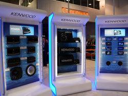 ブースの入口では、パートナーシップを結んでいるマクラーレンのスポーツカーが来場者をお出迎え。ブース内に進むと、ケンウッドのハイレゾ対応カーナビ“eXcelon”「DNX893S」を始めとする様々なカーオーディオ製品が展示されている。