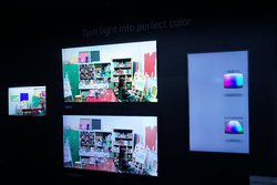 さてサムスンのブースでは、テレビの展示はこのQLEDに終始していて、有機ELテレビの展示は一切なかった。LGや日系メーカーはもちろん、LG電子のパネルの供給を受けた中国メーカーですら有機ELテレビを展示していたことを考えると、有機ELパネルの生産から一度撤退しており、ライバルのLGからパネルを購入するわけにもいかないサムスンの微妙な立場が伝わってくる。