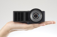 投影方式はDLPで、投影解像度は1,280×720のHD画質、投影スクリーンサイズは30〜100型まで対応。周辺の明るさを検知しプロジェクターの明るさを自動調整する「DLP IntelliBright」機能を搭載。さらに台形補正機能も備えており、水平最大40度まで自動補正できる。