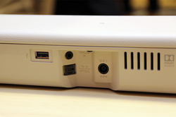 光端子/ステレオミニ端子を装備し、上位機同様ケーブルの取り回しやすさを考慮してバースピーカーの背面端子部は斜めに設置している。付属品には光ケーブルを同梱。なお、HDMI端子は非搭載となる。