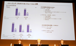 カメラ/ムービーカメラ/プロジェクターなどを含むイメージング・プロダクツ&ソリューション分野は、売上高9.6%減となる1,671億円。営業利益は211億円(前年同期比17億円減)。減益は主に為替の影響で、昨年同期の為替レートではほぼ横ばいとされている。