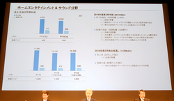 テレビやオーディオ、ヘッドホン等が含まれるホームエンタテインメント&サウンド分野は、売上高3,534円(前年同期比12.1%減)、営業利益259億円(同52億円減)。分野全体で高付加価値モデルへのシフトによる製品ミックスの改善があったものの、為替の影響や家庭用オーディオ・ビデオ市場縮小にともなう販売台数の減少に押されたかたちだ。
