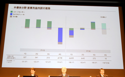 営業利益は212億円(同29億円減)。構造改革の効果などによる費用削減や為替の好影響、構造改革費用の減少があったものの、売上高減などにより減益となった。販売見通しについては下方修正しているが、売上の減少によるマイナスの影響を小さくできる体制が整ってきており、黒字化実現の可能性はあると考えているとした。