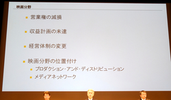 映画分野では、売上高は前年同期比14.1%減少の2,252億円、営業損益は前年同期の204億円の利益に対し1,068億円の損失。これは既報の通り、映画製作の大幅な減収があったこと、そして前述の営業権の減損によるものだ。