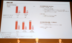 イメージセンサーやカメラモジュール等の半導体分野は好調で、売上高は前年同期比16.9%となる2,339億円。営業利益も前年同期比で59億円増加となる272億円となった。為替の影響や、事業規模を縮小したカメラモジュール事業の大幅な減収はあったものの、主にモバイル機器向けイメージセンサーの販売数量が大幅に増加したことが結果につながった。