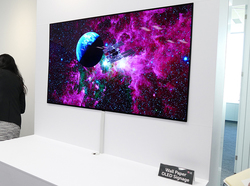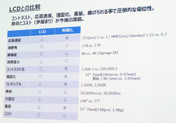 液晶ディスプレイと比較すると、有機ELは薄さや軽量性はもちろん、コントラストや応答速度の優位性もある。曲げられるという点でも展示の幅も大きく広がる。一方で、解像度は現時点では2K、サイズも最大55インチ(テレビ用は最大77インチ)と液晶には劣る。ただ、今年中には4Kモデルの展開も予定されており、サイズの大型化も進めていくとしている。